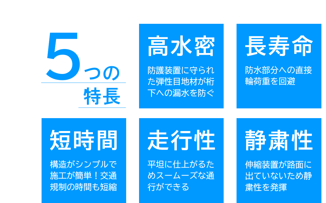 | 弾性目地材 | 防水シート | 防護装置 | NETIS登録 | |